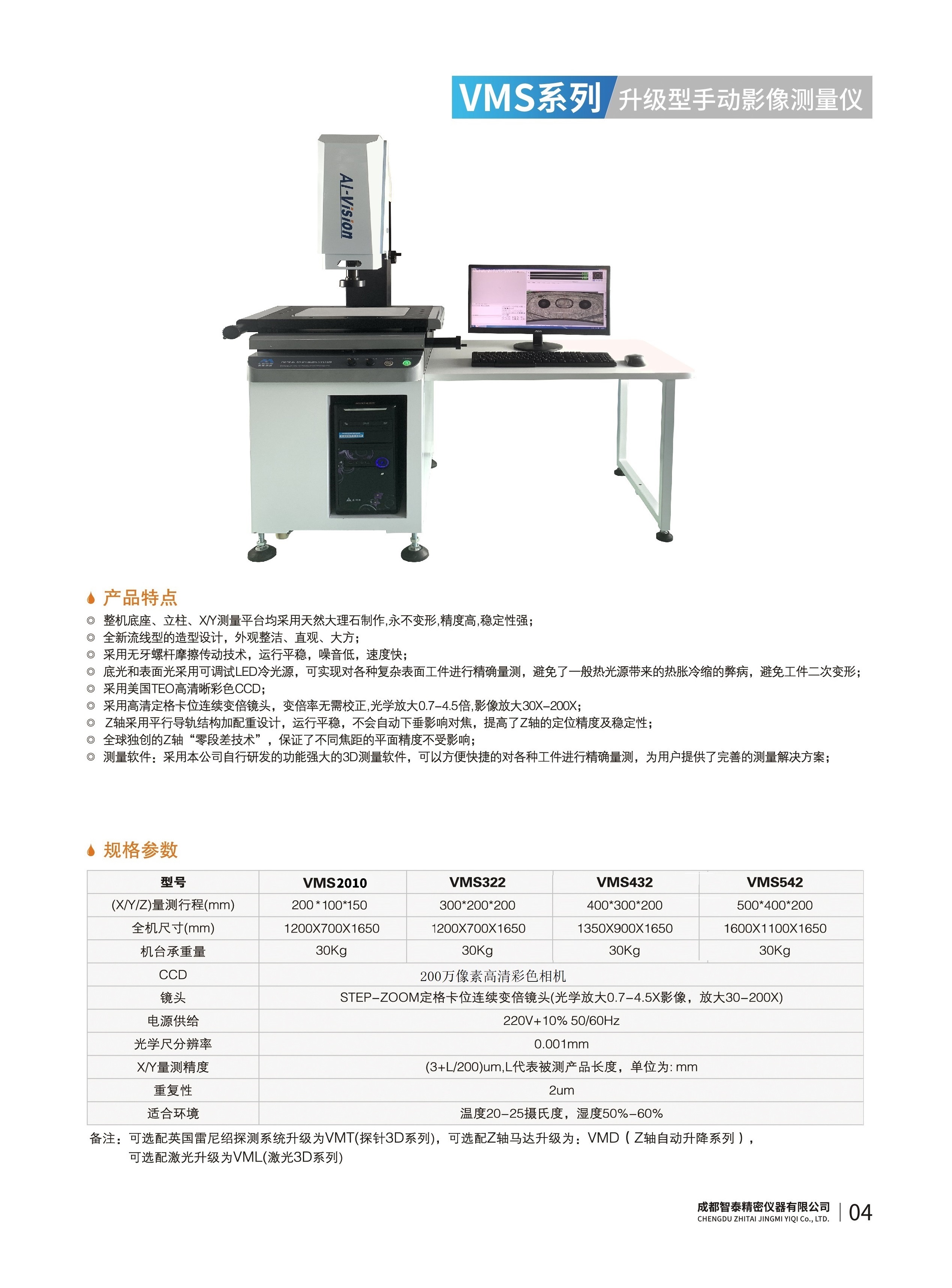 成都智泰精密儀器有限公司專注于精密測量儀器,人工智能,智能制造領(lǐng)域,專業(yè)從事智能視覺自動化檢測解決方案的貿(mào)易型企業(yè)。公司成立于2011年,位于天府之國成都,現(xiàn)有行業(yè)精英十余人,辦公倉儲面積200余平米。 公司主要產(chǎn)品為精密光學(xué)影像測量儀,精密輪廓形狀測量儀,精密機(jī)器人定位系統(tǒng),精密智能視覺尺寸檢測儀器,精密表面缺陷智能檢測設(shè)備,工業(yè)工程特種機(jī)器人。 公司憑借過硬的技術(shù)實(shí)力和產(chǎn)品方案,率先進(jìn)入智能視覺自動化檢測領(lǐng)域,推廣以精密智能視覺自動化檢測為基礎(chǔ)的機(jī)器人自動化應(yīng)用,公司不斷整合上下游的資源,擁有巨大的全產(chǎn)業(yè)鏈優(yōu)勢。客戶群體覆蓋了我國精密制造業(yè)的多數(shù)領(lǐng)域,包括航空、航天、軍工、汽車、新能源、光伏、食品,精密電子、精密機(jī)械、模具、PCB、LCD、五金、塑膠、醫(yī)療、教育、計(jì)量及科研院所等行業(yè)。 公司創(chuàng)新的產(chǎn)品能滿足生產(chǎn)與制造行業(yè)客戶的要求,訓(xùn)練有素的工程師能及時(shí)提供多種技術(shù)服務(wù),如解...